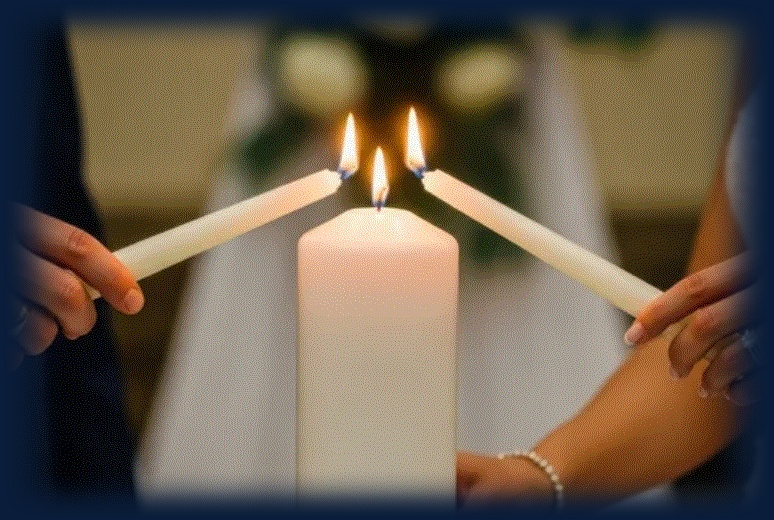 Each partner lights their taper candle (or you could choose a member from each family) and then together they light the unity candle.